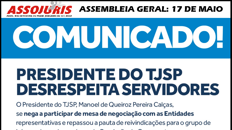 ASSEMBLEIA GERAL DA CATEGORIA – 17 DE MAIO