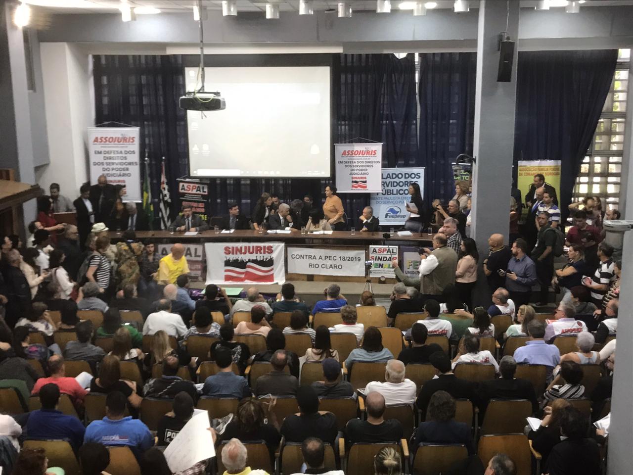 Entidades de várias Classes do Servidorismo de São Paulo, entre elas o SINJURIS, esta representada massivamente pelos seus dirigentes, estiveram no auditório Franco Montoro durante toda a tarde desta segunda-feira (2) onde foi realizada audiência pública contra a Reforma da Previdência Estadual.